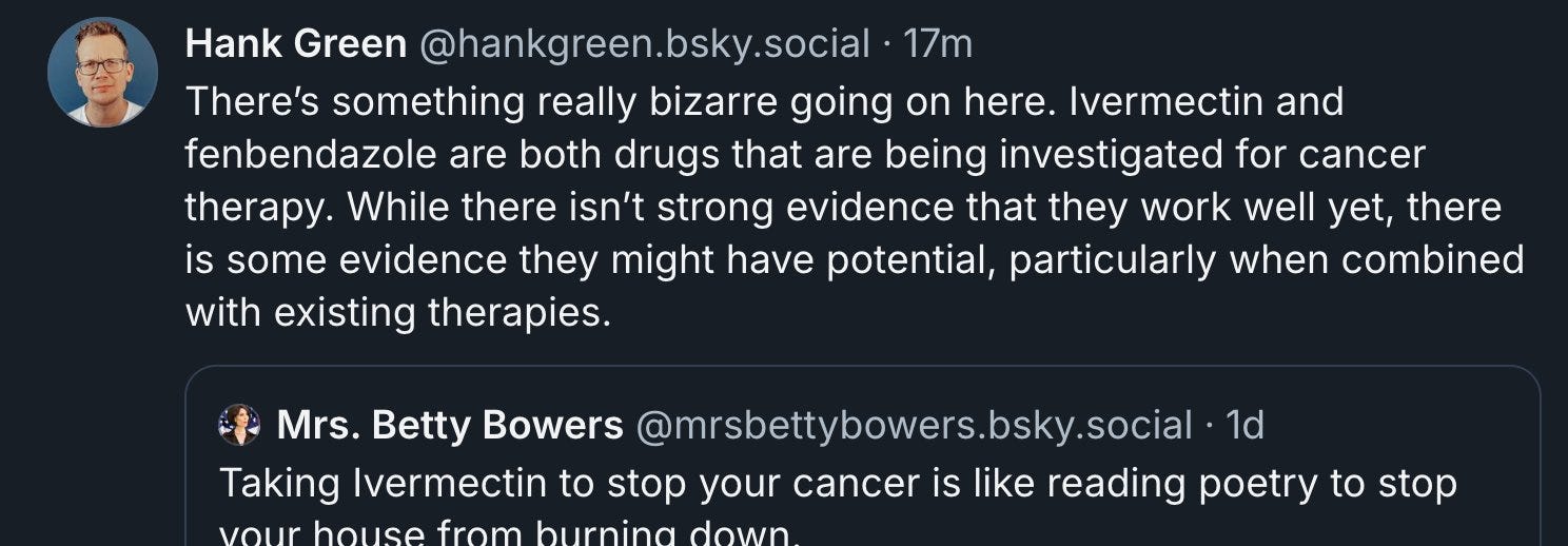What he’s doing here is good not just for him & his audience, it’s ALSO good for everyone else. If you had a truth from the right-wing egregore, and you wanted to surface it to a liberal audience, you’ll have a much easier time doing this with Hank’s audience, than with Taylor Lorenz’s audience.