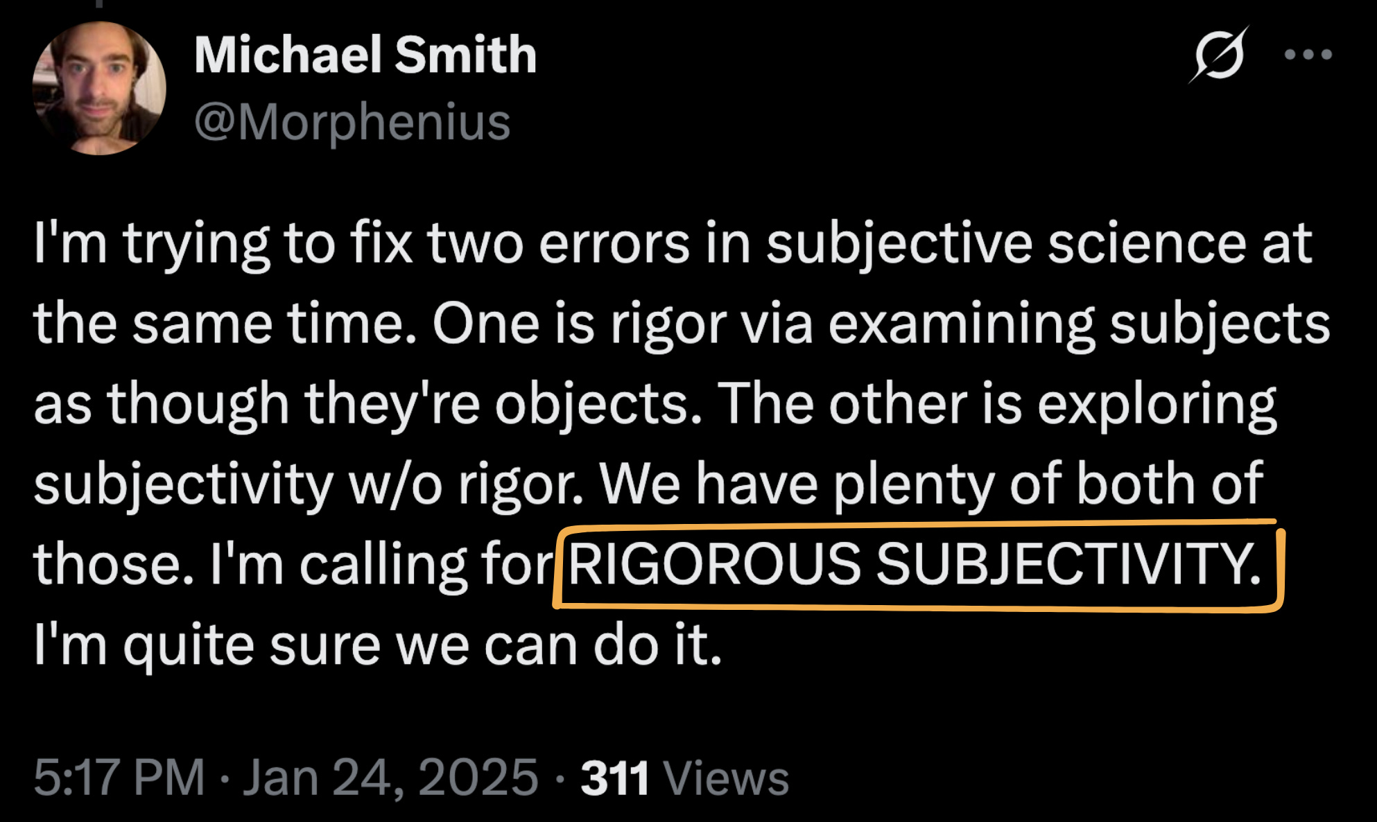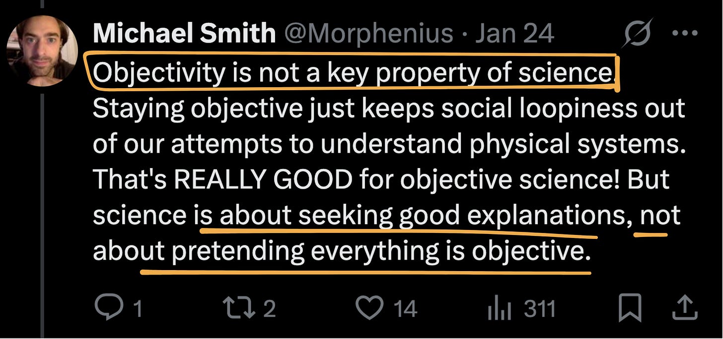 The fact that studying the culture changes it is NOT a problem to be fixed: it’s a property of the reality we are studying. Michael Smith has an excellent thread about this being a key bottleneck, and how we must solve the problem of embracing this necessary subjectivity while still being rigorous.